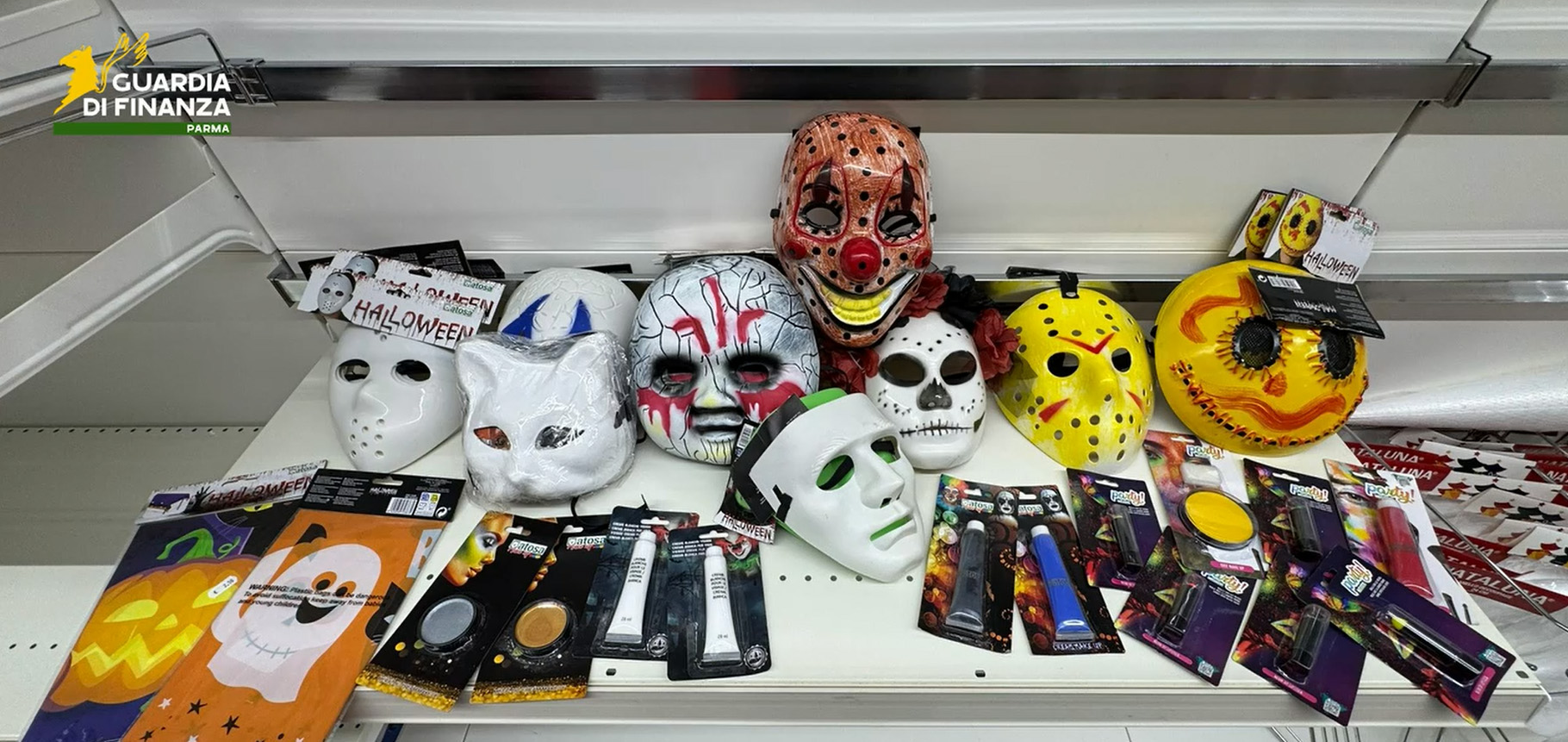Le pattuglie del Gruppo Parma, della Tenenza di Fidenza e della Tenenza di Fornovo, nel corso di tre distinte ispezioni, hanno individuato tra gli scaffali delle attività commerciali, pronti per essere acquistati dai clienti, diversi articoli carnevaleschi, come maschere, creme make up, glitter, stelle filanti e altri accessori per il travestimento oltre a numerosi oggetti di bigiotteria e articoli per la casa e la persona, sprovvisti delle indicazioni minime obbligatorie previste dalla normativa.