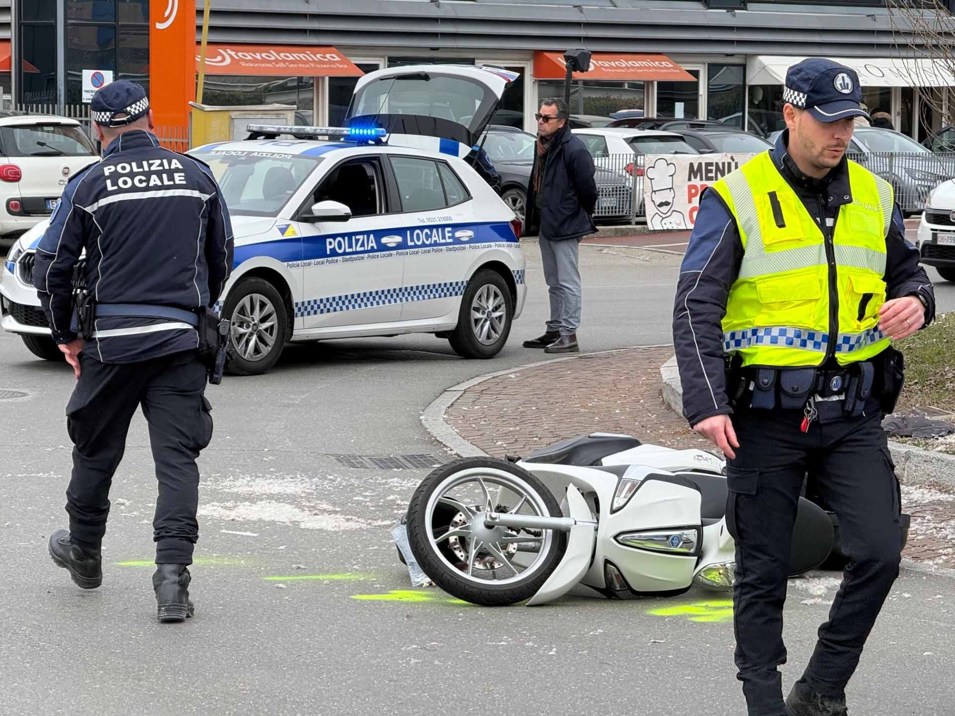 Grave incidente in via Spezia. Nella rotatoria all'incrocio con strada Guidorossi, per cause da accertare uno scooter è finito a terra. Il motociclista ha riportato gravi ferite ed è stato soccorso da un'ambulanza inviata dalla centrale del 118: è in osservazione al pronto soccorso del Maggiore. La polizia locale ha effettuato i rilievi, disagi al traffico nel tratto fra la rotatoria e la tangenziale.