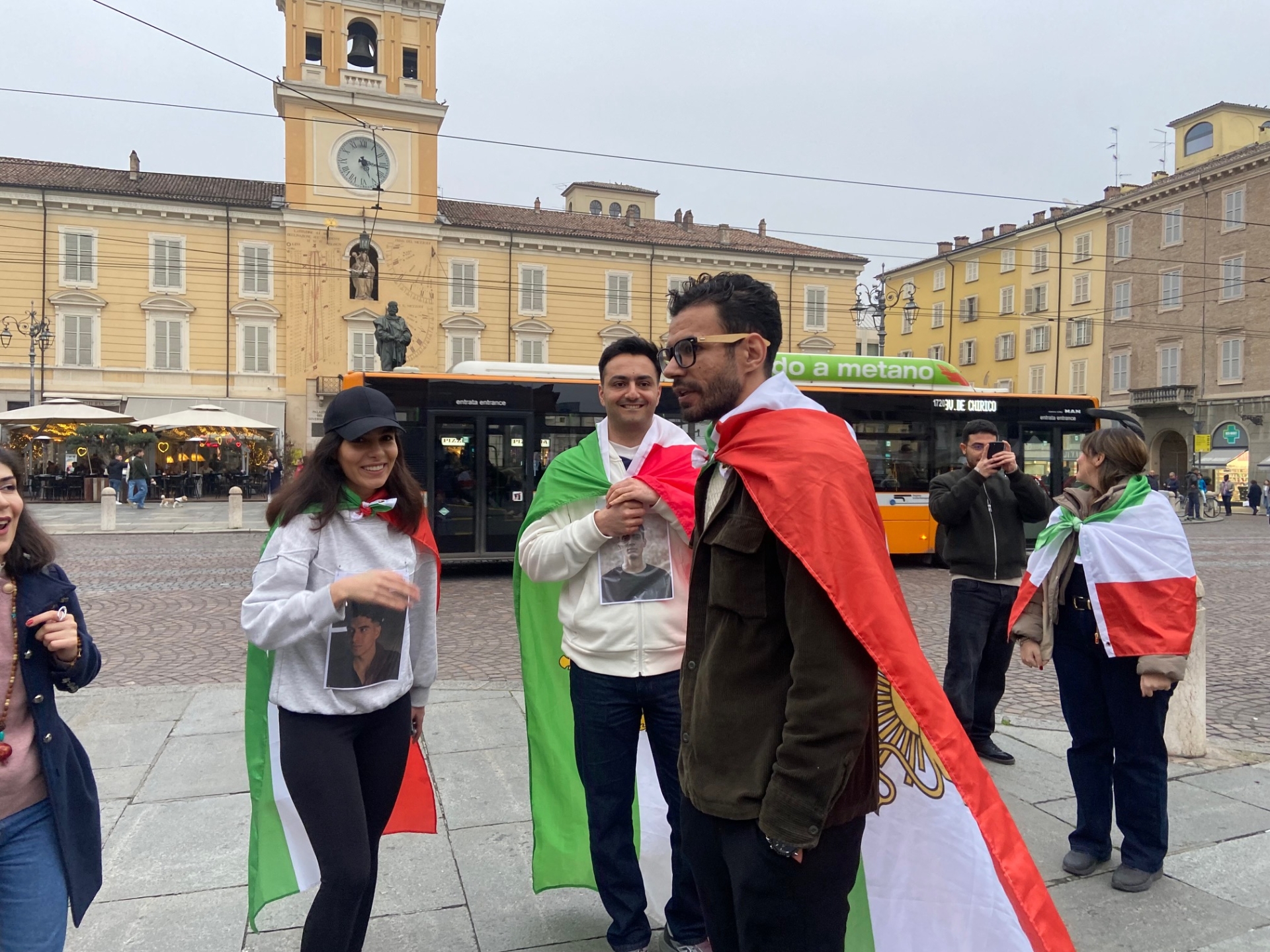 Bandiere sventolate o tenute sulle spalle, mentre attraversano le vie della città. Per camminare pacificamente da piazza Garibaldi alla Cittadella. La comunità iraniana di Parma si è ritrovata questo pomeriggio nel cuore del centro storico per manifestare rispetto a quello che sta accadendo in queste ore nella loro terra: la loro speranza è che il regime venga rovesciato. Tra i tanti presenti in Piazza, diversi giovani e studenti.