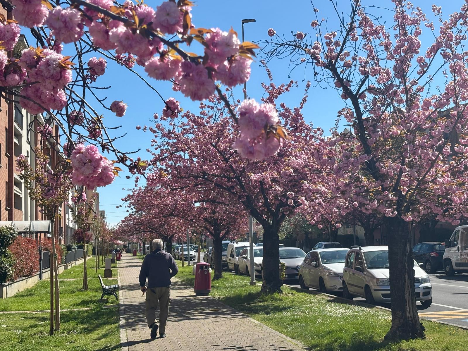 E' arrivato quel magico momento dell'anno: via Picasso (quartiere San Lazzaro) si trasforma in un corridoio di petali. Una sorta di giardino giapponese a due passi dalla città. I ciliegi ornamentali, allineati lungo la strada, sono sbocciati e hanno colorato il quartiere di rosa e bianco, regalando a residenti e passanti una vera e propria opera d'arte naturale. C’è chi rallenta per scattare una foto, chi si ferma in silenzio sotto le chiome e chi attraversa la via con il naso all’insù. Un regalo per chi abita nella zona: i residenti sono affezionatissimi a quegli alberi così speciali e caratteristici. Tanti parmigiani arrivano da altri quartieri per scattare fotografie e immergersi nella bellezza. Vale proprio la pena fare una passeggiata sotto i rami carichi di fiori. Per viaggiare "altrove" rimanendo a due passi da casa.