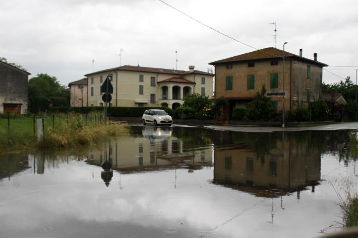 Allagato, oggi pomeriggio, a causa delle piogge torrenziali, il centro di Pieveottoville. Come già accaduto in occasione di altre abbondanti precipitazioni, vasti allagamenti si sono formati in via 11 Settembre 2001 e in via IV Novembre, soprattutto a ridosso della scuola materna e del vecchio ufficio postale ma anche a due passi da piazza Battisti. Si tratta, per la frazione di Polesine Zibello, di un problema che già in passato purtroppo si è presentato. Allagamenti anche in via Rossare, sempre a Pieveottoville e nelle campagne circostanti oltre che in alcune strade secondarie, anche a Zibello. A Busseto, invece, ha grandinato.