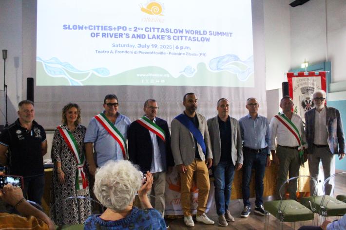 Si è conclusa oggi, domenica 20 luglio, a Polesine Zibello, la seconda edizione di Po festival evento che per tre giorni ha messo in scena, nella terra del Grande fiume, eventi che hanno spaziato tra gastronomia, prodotti tipici, cultural, storia e tradizione creando un dialogo ed un confronto di sapori tra le Cittaslow d’acqua dolce. Il festival, che si è aperto con la festa per il decennale della Real Vidalenzo, ha avuto tra i suoi momenti clou , il secondo summit internazionale delle Cittaslow. Disegnare insieme un futuro sostenibile per i territori d’acqua è stato il cuore dell’incontro che ha coinvolto esperti, universitari, studiosi, sindaci ed amministratori della rete mondiale delle Cittaslow che si sono incontrati per un dialogo globale sul tema dell’acqua. Dalla crisi climatica al turismo lento, dall’arretramento del permafrost alla gestione delle acque, dalle innovazioni nella gestione di bacino alla valorizzazione culturale dei fiumi su modello Unesco. Queste e altre sfide attuali sul tema dell’acqua sono state al centro del dibattito. Quindi, la cena in riva al Po a base di specialità locali, arricchita dal risotto al gongorzola della Cittaslo di Abbiategrasso, dalle sfogline di Mezzani e dai vini tipici del Pavese. Serata, questa, arricchita da un emozionante viaggio tra le più belle canzoni italiane degli anni Cinquanta, fino agli anni Duemila, col Parma Brass e le voci di Silvia Olari e Fabrizio Ceste. A seguire, spazio al Dj Set a cura di Tubista. Oggi, a chiusura di Po Festival, nel chiostro dell’ex convento domenicano di Zibello, si è tenuto il "Mercato contadino: dalla terra alla tavola". I proventi dell’intero evento saranno destinati alla Pubblica assistenza Croce bianca di Busseto.