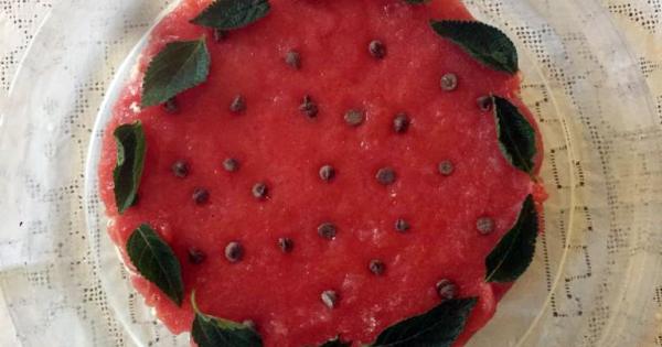 Per guarnire: Gr 500 cocomero - Gr 20 amido di mais - Gr 30 zucchero - Foglie di menta