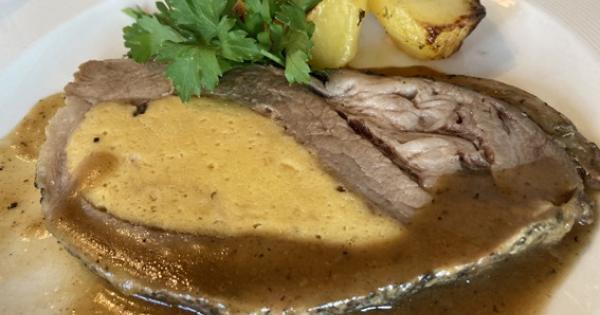 Mettere in una ciotola il pane grattugiatelo e scottatelo con il brodo bollente. Lasciare raffreddare e aggiungete la noce moscata, sale, pepe, le uova e il parmigiano reggiano, mescolando fino ad ottenere un impasto morbido ma compatto. Create una tasca nella polpa e conditela con un battuto di erbe aromatiche e sale. Inserite il ripieno nella tasca e, con ago e filo da cucina, chiudete l’apertura in modo che durante la cottura il ripieno, gonfiandosi, non fuoriesca. Cospargere la parte esterna con le erbe aromatiche e rosolate la carne in una teglia con burro, sedano, carota e cipolla. Una volta che gli zuccheri della carne si saranno caramellizzati, sfumate con vino bianco secco. Aggiungete un po’ di brodo, coprite la padella con la carta stagnola e mettetela in forno per circa un’ora e mezza. A cottura ultimata, far restringere sul fuoco il fondo di cottura. Impiattate le fette di carne, tagliate dopo avere tolto lo spago, bagnandole con il sugo e accompagnate da patate arrosto o purè.