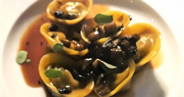 Il ripieno sia nel profumo sia nel sapore ricorda i migliori arrosti di sempre. Complice anche la scelta della guancia per realizzare il ripieno, un taglio collagenoso che garantisce morbidezza delle fibre e succulenza e la tostatura degli ossi che coi funghi rosolati creano un fondo strepitoso.
