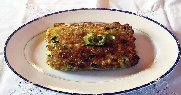 In una padella facciamo appassire la cipollina tagliata fine con l’olio, aggiungiamo gli zucchini tagliati a tocchetti, aggiustiamo di sale e pepe e cuociamo per 4 minuti. Frulliamo i pinoli con l’olio, basilico e aglio. In una ciotola schiacciamo con la forchetta la ricotta, aggiungiamo le zucchine, il formaggio, le uova e il pesto che abbiamo preparato. Versiamo il composto così ottenuto in una pirofila foderata con un foglio di carta forno bagnato e strizzato e cuociamo in forno a 180° per 25 minuti.