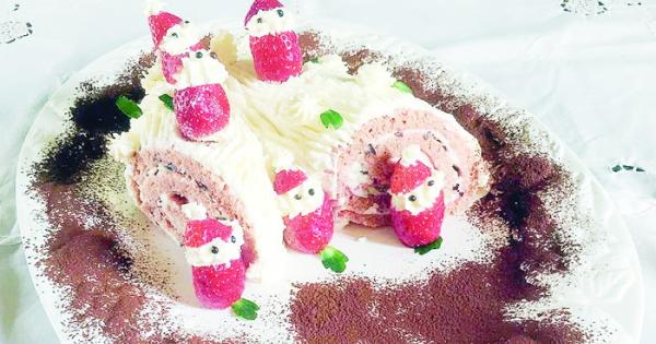 Dividiamo i tuorli dagli albumi e montiamo questi ultimi a neve ferma. In un’altra ciotola, uniamo lo zucchero ai tuorli e montiamo sino a quando il composto non risulterà spumoso, aggiungiamo il colorante rosso e amalgamiamo per bene. Con delicatezza, con movimenti dall’alto verso il basso, uniamo gli albumi al resto della crema. Aggiungiamo la farina, il lievito e la vanillina e continuiamo a lavorare finchè non avremo una crema liscia e spumosa. Foderiamo il piatto del forno, versiamo l’impasto e cuociamo a 80° per 8 minuti. Prendiamo un canovaccio umido e arrotoliamo l’impasto. Montiamo la panna con lo zucchero a velo, ne teniamo da parte due cucchiai che serviranno per farcire i Babbo Natale e incorporiamo il resto al mascarpone. Srotoliamo delicatamente il rotolo di pasta che farciremo con metà della crema preparata, cospargiamo di gocce di cioccolato e arrotoliamo stretto facendo attenzione a non romperlo. Mettiamo in frigorifero a riposare per 30 minuti. Tagliamo obliquamente il dolce tenendo una parte più corta e posizioniamo i due pezzi ottenuti sul piatto di portata dando la forma del tronco. Ricopriamo con la farcia rimasta e, con la forchetta, creiamo la striatura che da’ l’effetto corteccia. Tagliamo la parte superiore delle fragole che ricomporremo a mo’ di cappello sopra al ciuffetto di panna. Due gocce di cioccolato per gli occhietti e il gioco è fatto!