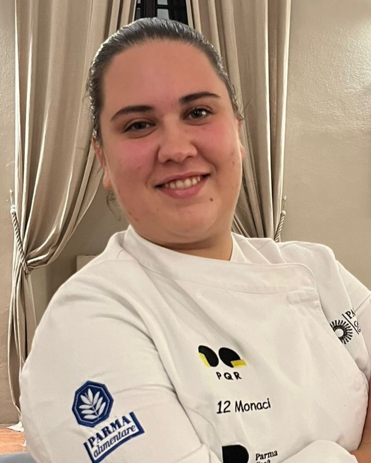 Arianna Marossa, 21 anni, di Roccabianca, è diplomata all’Istituto Alberghiero di Salsomaggiore. Ha iniziato a lavorare al 12 Monaci di Fontevivo durante gli stage scolastici sotto la guida dello chef Andrea Nizzi e da tre anni è diventata parte della brigata. Appassionata di pasta fresca e preparazioni tradizionali, ha partecipato alle ultime due edizioni de la Cena dei Mille.