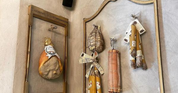 Un piccolo dehors, qualche gradino e poi, all’ingresso, un trionfo di scintillanti lampadari vintage a goccia, uno vicino all’altro con mille lampadine a contrasto col soffitto, l’intonaco rustico delle pareti, i vecchi pavimenti, le sedie da osteria con lo schienale ricoperto. Subito il bancone coi salumi, alcuni di questi appesi ai muri e contornati da cornici come opere d’arte, perlinato in legno alle pareti, tanti particolari e dettagli a disegnare un ambiente insolito, baroccheggiante, un po’ kitsch. Altre due salette, e lampadari e specchi a disegnare, per chi apprezza, una trattoria alla moda: il patron ha messo l’iniziale del suo cognome davanti al nome della trattoria, come in altri locali in città, quasi a voler segnare il marchio di uno stile. Tovaglie di cotone a fiori, stoviglie bianche e tonde col nome del locale, posate barocche: carta dei vini ben calibrata tra proposte del territorio e dalle regioni italiane, scelta limitata e di qualità per spumanti e champagne, distillati, amari, servizio sorridente, ambiente che tende a diventare rumoroso.