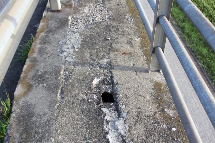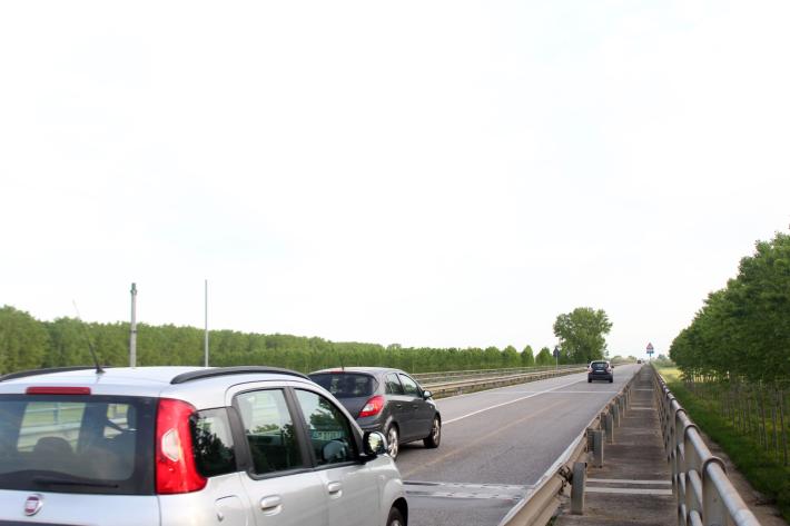Buchi nei marciapiedi pedonali, erbacce e rovi che coprono segnali e guard rail e sorpassi azzardati. Questa la situazione attuale che si presenta lungo il ponte sul Po "Giuseppe Verdi" che collega Emilia e Lombardia, Parmense e Cremonese nel tratto compreso tra i Comuni di Polesine Zibello, Roccabianca e San Daniele Po. Una infrastruttura strategica, percorsa quotidianamente da miglia di veicoli e, come noto, un "grande malato" con non pochi problemi strutturali che si trascinano da danni. Per questo sono già stati effettuati diversi lavori ed altri, importanti, secondo il "crono programma" inizieranno subito dopo l’estate grazie ad uno stanziamento statale di 20 milioni di euro. Intanto la situazione che si presenta non è certo delle migliori. Lungo i marciapiedi pedonali (che sono stati realizzati, all’epoca della costruzione del ponte, per permettere il passaggio di eventuali lavoratori ma, se sistemati, potrebbero essere utilizzati in sicurezza da pedoni e ciclisti) che fiancheggiano il viadotto si sono aperti nuovi e notevoli buchi. In più, la vegetazione è esplosa, all’imbocco del ponte, andando quasi a coprire i segnali stradali e buona parte del guard rail. A questo si aggiunge la notevole "legnaia" con un ammasso di tronchi e detriti accumulati dalle ultime piene del fiume a ridosso delle pile in alveo (proprio quelle che saranno oggetto dei prossimi e importanti lavori) senza dimenticare il comportamento di tanti automobilisti, evidentemente poco dotati di senso civico e di rispetto delle regole che, continuamente, imperterriti, sfrecciano lanciandosi in pericolosi sorpassi nonostante i divieti in vigore. Su tutto il ponte, infatti, proprio per motivi di sicurezza dello stesso, vige il limite di velocità a 50 km/h (ridotto a 30 nella parte ammalorata disciplinata dal senso unico alternato e dalla presenza dell’autovelox fisso) oltre al divieto di sorpasso.