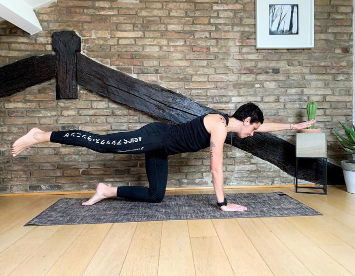 Partenza in quadrupedia. Inspirando, alzare contemporaneamente braccio e gamba opposti; espirando tornare in quadrupedia e ripetere con l’altro lato. Importante: mantenere contratti i muscoli addominali. 3 serie x 8 ripetizioni.