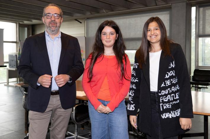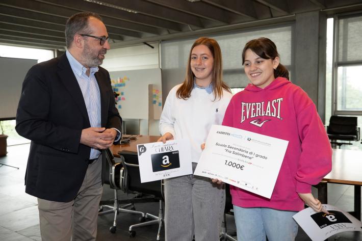 La supereroina «Gloria» e la sua battaglia alle fake news hanno fatto vincere a Anna Mutti e Chiara Pileggi il primo premio di «Gazzetta nelle scuole». E la felicità delle due studentesse della 2ªE della media Fra Salimbene è stata contagiosa.