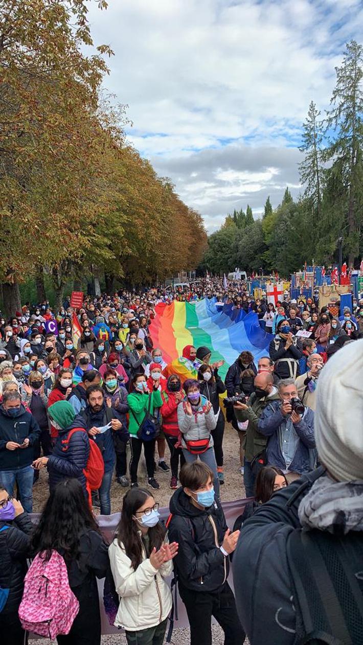 La pace è un dovere, ha scritto il presidente Mattarella. Un messaggio per i 30 mila della marcia Perugia-Assisi. E Parma c'era. Studenti e prof che dopo quasi due anni di pandemia, «sono tornati a viaggiare, con una meta come Assisi, simbolo di pace. Così il viaggio si fa significativo e impegnativo», dice con orgoglio il preside del liceo Ulivi Giovanni Brunazzi. Che ha visto i suoi alunni, quelli del Romagnosi e del Bertolucci partire all'alba per una marcia, accompagnata dalle note dei ragazzi dello stesso liceo musicale Bertolucci: 7 studenti parmigiani hanno infatti composto la colonna sonora dei convegni, che si sono tenuti nella sala dei Notari nel palazzo del Comune di Perugia, e quella della vera e propria marcia, sul palco della Rocca Maggiore ad Assisi. Merito della prof Elisa Gubert del Bertolucci, docente di Clarinetto, che ha portato avanti anche in tempi di Covid un lavoro encomiabile. Oggi più che mai, in questa marcia che è una sorta di «aula laboratorio» della cultura di pace, come ha sottolineato Pier Paolo Eramo.