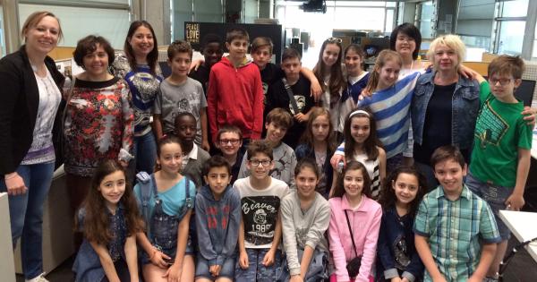 Gli alunni e gli insegnanti della 5ª E della scuola "Ulisse Corazza" visitano la redazione della Gazzetta di Parma.