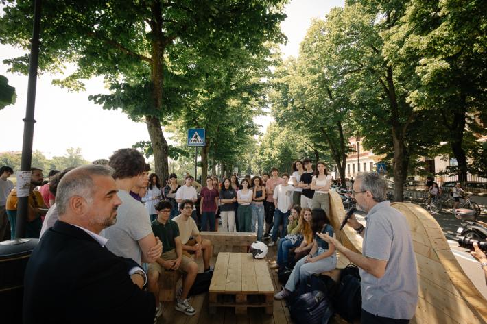 Il debutto ufficioso è già avvenuto nelle ultime settimane, a struttura ormai finita, quando davanti al liceo Romagnosi ha subito iniziato ad essere vissuto da studenti e studentesse ma anche persone di passaggio. Oggi l’inaugurazione ufficiale del nuovo spazio pubblico su viale Maria Luigia. È stato costruito dal Green team del Romagnosi in collaborazione con Manifattura urbana e gli studenti e le studentesse di altra scuole, in particolare il liceo ulivi, Ospita tavolini e panche. Il progetto lo racconta Letizia Aldini, rappresentante del green team. Eva Bianchi e Chiara Ascari, del gruppo change dell’ulivi, parlano invece di come il loro primo parklet stia contagiando altre scuole. Con idee anche più ambiziose per il futuro