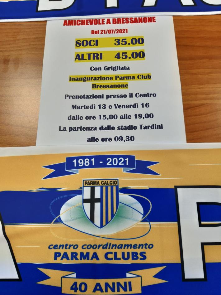 E per l'amichevole del 21 luglio a Bressanone (e inaugurazione del Parma club Bressanone) il Centro di Coordinamento organizza la trasferta.