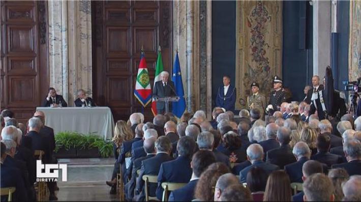 Cerimonia nel salone dei Corazzieri. Sono presenti anche il prefetto Giuseppe Forlani e Elio Giovati, presidente della federazione dei Maestri del lavoro.