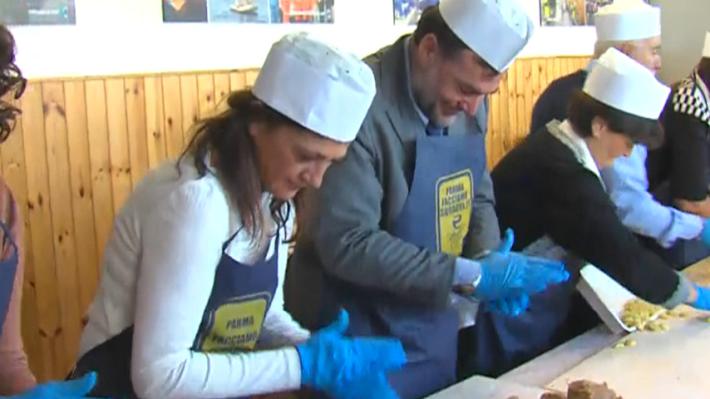 Volontari in pista per realizzare gli anolini da vendere per beneficenza.