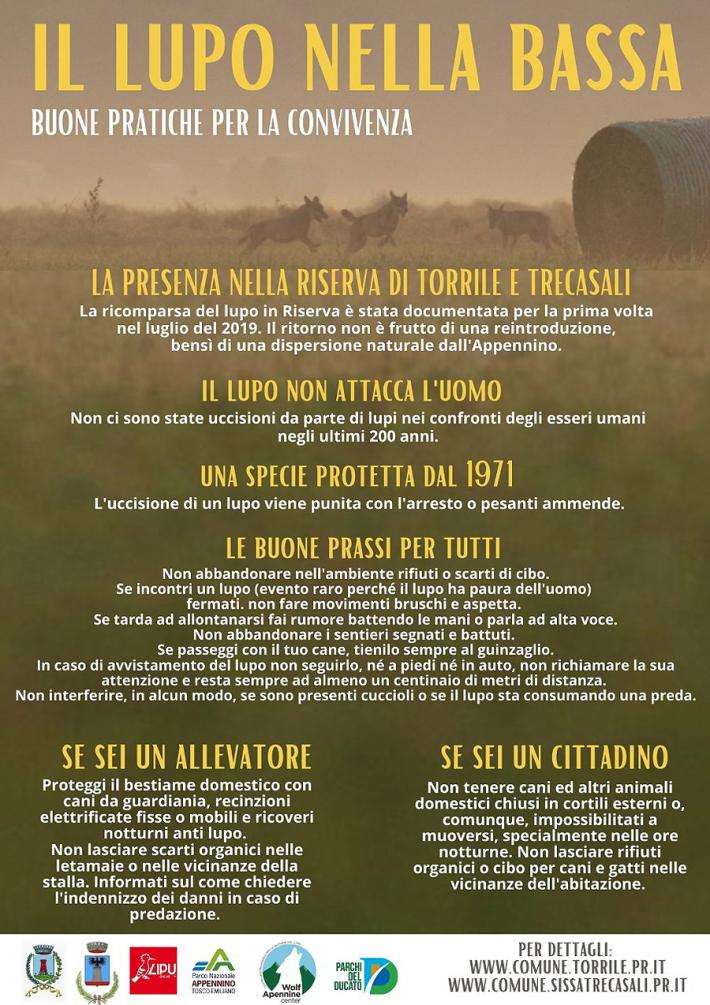 La convivenza con il lupo, oggi “di casa” anche nella Bassa Parmense, è possibile. A dirlo gli esperti che sono interventi al convegno “Il lupo nella Bassa: buone pratiche per la convivenza” organizzato al circolo Il Portico di Torrile grazie alla collaborazione tra i comuni di Torrile e Sissa Trecasali, Riserva naturale di Torrile e Trecasali, Lipu, Parco nazionale dell’Appennino Tosco Emiliano, Parchi del Ducato e Wolf Apennine Center.