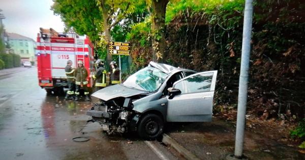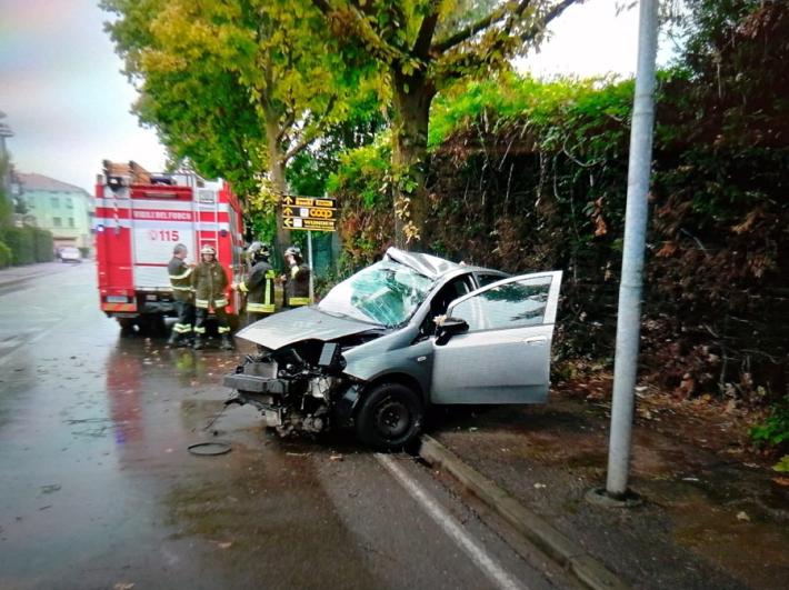 Auto sbanda e finisce contro un platano in via Mantova: un ferito