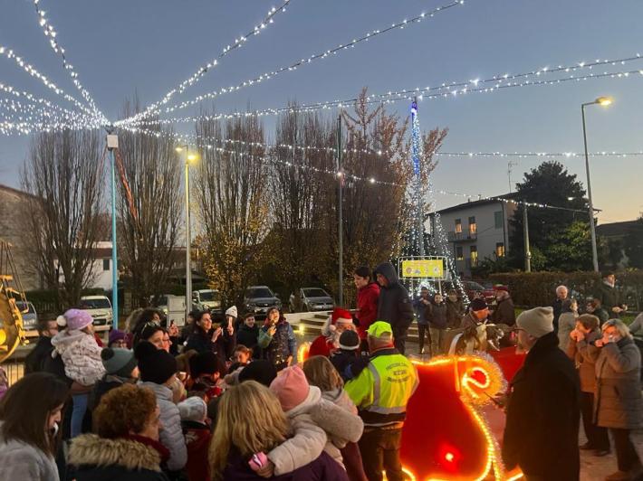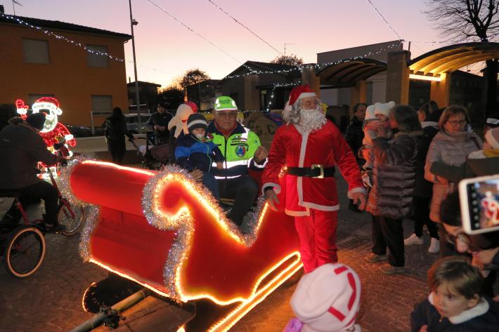 È stato un pomeriggio di festa quello di ieri per la frazione di Mezzano Inferiore del comune di Sorbolo Mezzani. Gli appuntamenti sono iniziati con il taglio del nastro ufficiale per la conclusione dei lavori di riqualificazione di piazza Belli, finanziati dal Comune per un importo di 97mila euro, e sono seguiti con l'accensione delle «luci solidali» su tutta la piazza, organizzata dal gruppo di Protezione Civile di Mezzani, con il contributo dell'amministrazione comunale: ben 7000 led, che si sono aggiunte al tradizionale albero del Gruppo volontari soccorso esondazione. Non è mancata una sorpresa per i più piccoli: a far loro visita è stato proprio Babbo Natale in persona, che ha parcheggiato la sua slitta e ha portato ai bambini un dono speciale, un piccolo panettoncino per festeggiare il momento. Il pomeriggio è proseguito con la bancarella solidale per la scuola elementare «Unicef» e la vendita di dolci natalizi, castagne e vin brûlé, a cura del circolo Arci «La capanna verde». Un evento che - inserito nel vasto programma di iniziative natalizie che l’amministrazione comunale di Sorbolo Mezzani ha organizzato in collaborazione con le associazioni del territorio - ha visto la partecipazione di tante famiglie e bambini. c.marc.