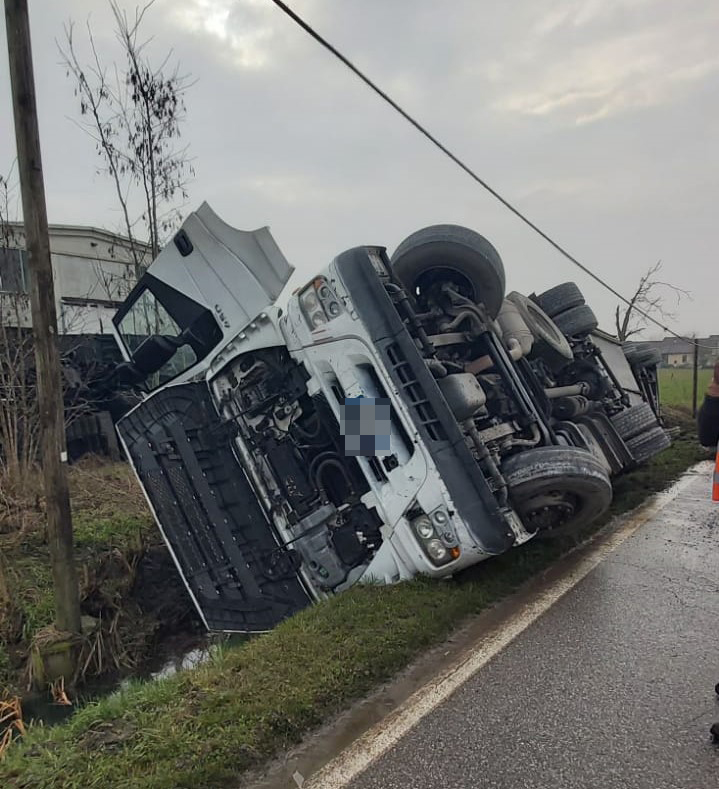 Incidente questa mattina sulla provinciale tra Sorbolo e Mezzano Inferiore, all'altezza di Enzano. Un camion si è rovesciato nel fosso sul ciglio della strada. Illeso il conducente.