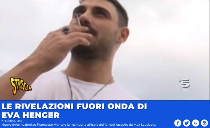 Secondo la Henger, appena sceso dall'aereo Francesco Monte avrebbe chiesto marijuana al conducente del pullman, che lo ha respinto a male parole perché in Honduras è previsto il carcere anche per l'uso personale di stupefacenti. "In albergo - aggiunge la Henger - lascia le valigie e va dai facchini a chiedere dove può trovare marijuana. Io l'ho guardato e gli ho detto 'Ma sei impazzito?'". Alla fine è spuntata la droga: una cessione vista da 17 persone fra concorrenti "non ancora divisi" e staff, sempre secondo il racconto di Eva Henger.