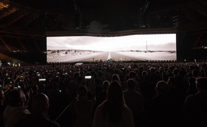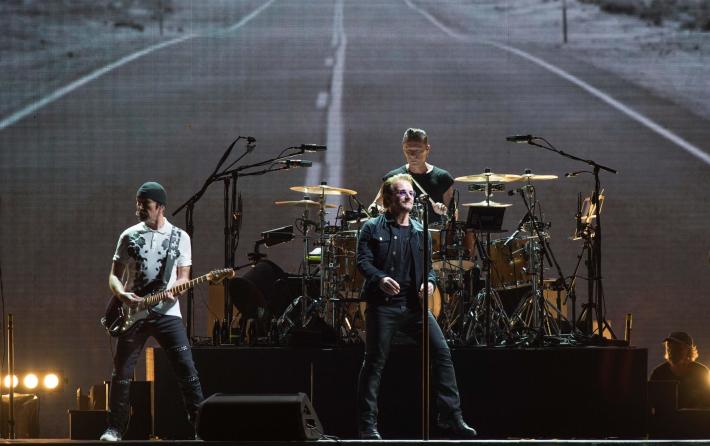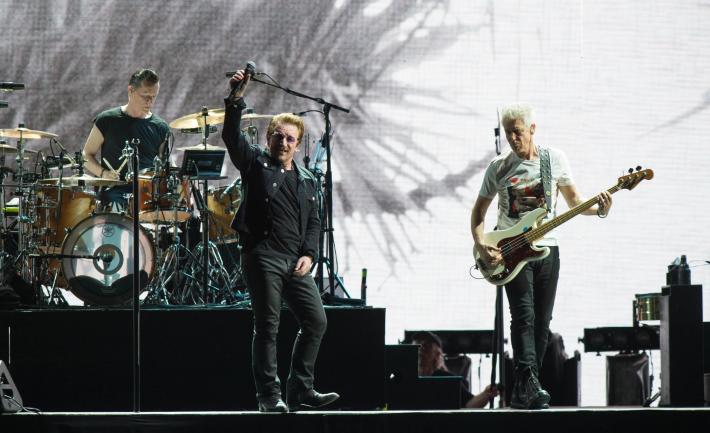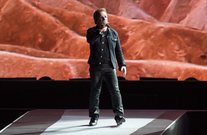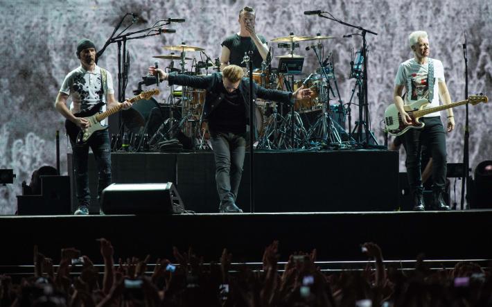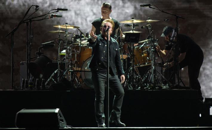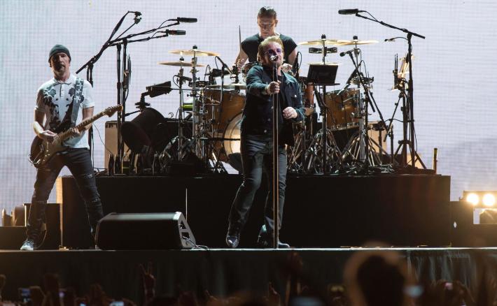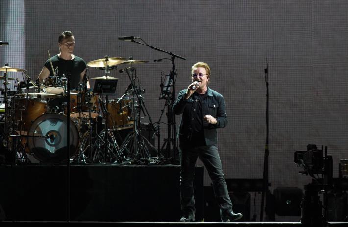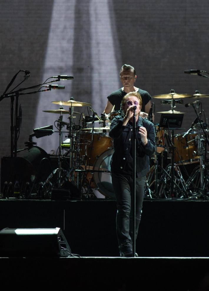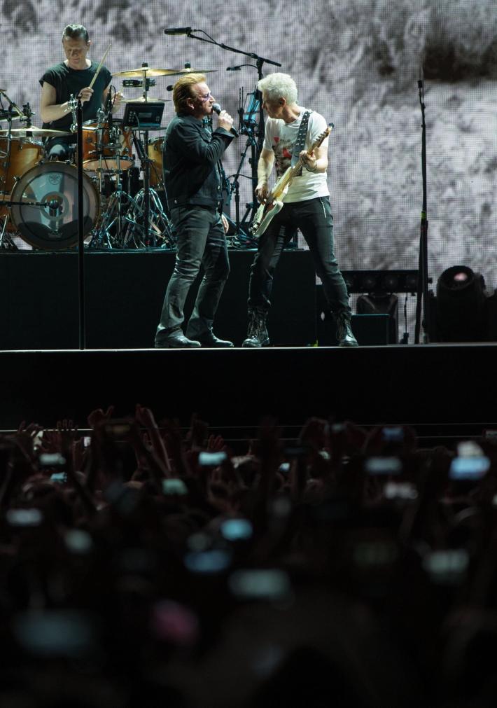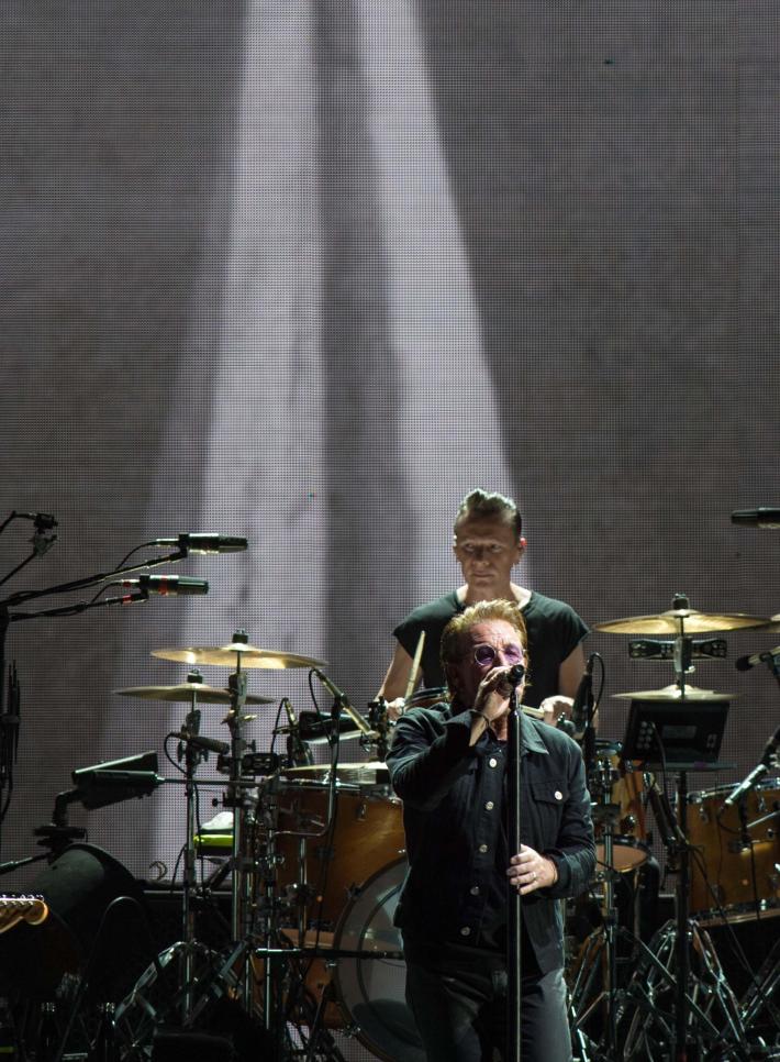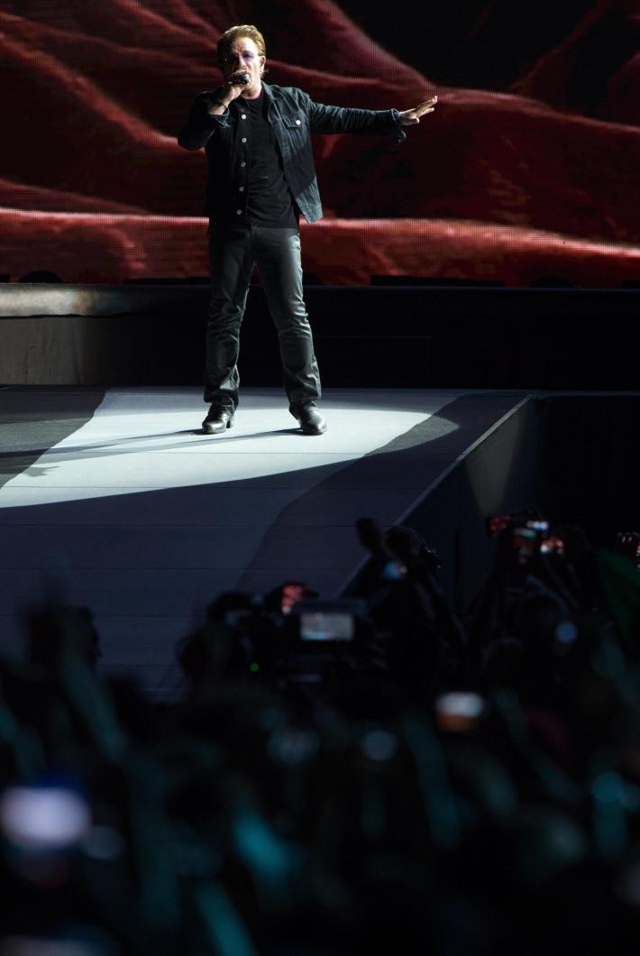 Ecco le immagini del primo concerto romano degli U2 (domenica 16 il secondo), unica tappa italiana del quartetto irlandese salito sul palco dell'Olimpico tra imponenti misure di sicurezze e davanti a 60mila fans.
