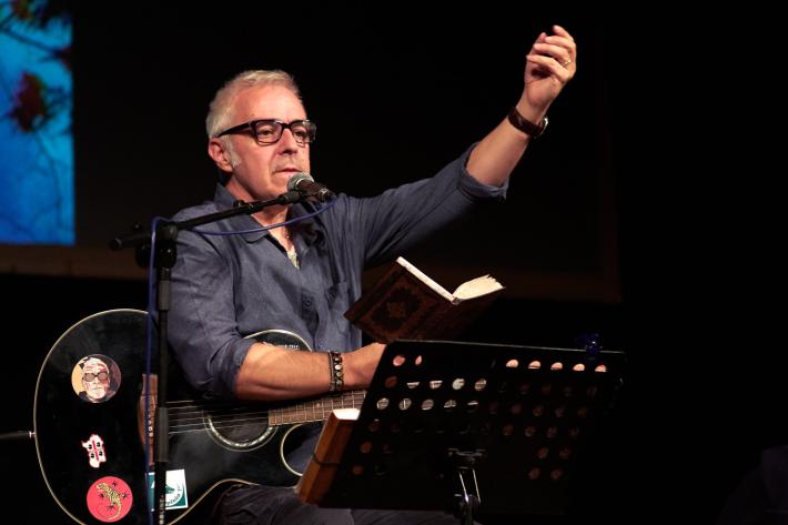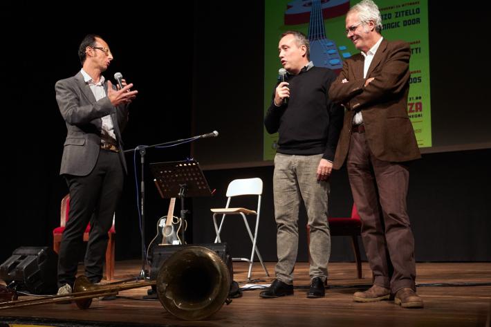 Ecco le foto del gran finale di Mangiamusica 2018 al Teatro Magnani di Fidenza con Davide Van De Sfroos in “Künta e Kanta". Degustazione di birre del Birrificio Toccalmatto, presentate da Massimo De Marco.