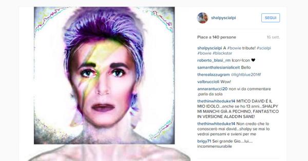 Questo il testo del post, riferito al testo di "Pettirosso", canzone del cantautore parmigiano dedicata all'amore gay (in uscita il 19 gennaio) ma, nell'occasione, dedicata (con tanto di foto, truccato come Bowie), al Duca Bianco.