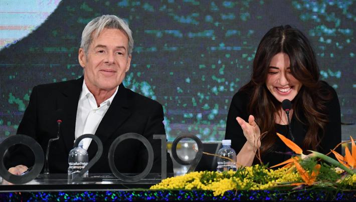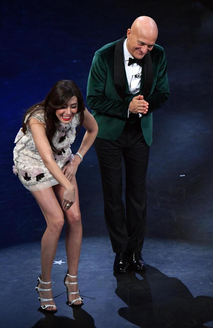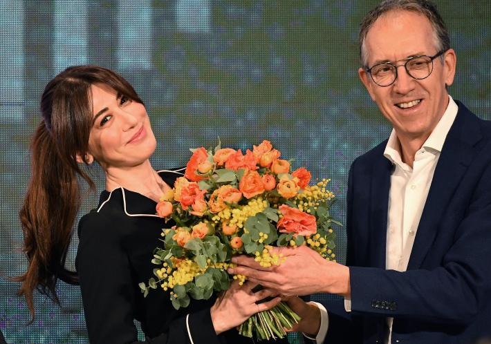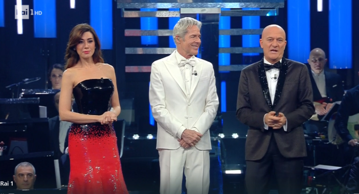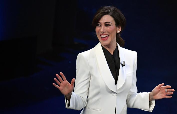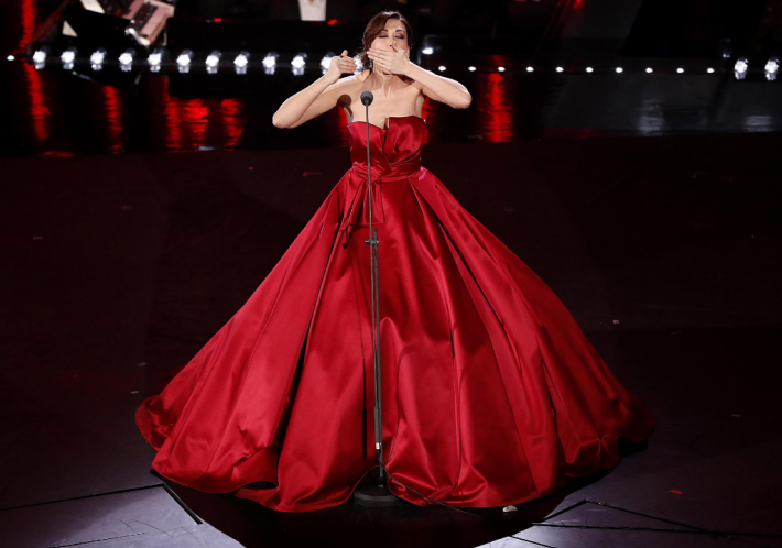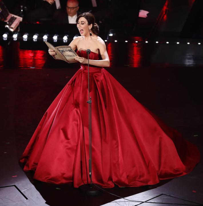 L’Ariston era in tutto piedi per lei: in prima fila, anche l'amministratore delegato della Rai Fabrizio Salini, il presidente Marcello Foa e la direttrice di Rai1 Teresa De Santis.