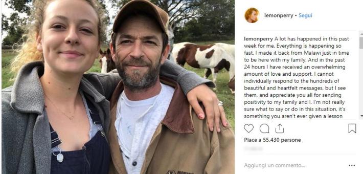 "Ho ricevuto una quantità enorme di amore e sostegno. Grazie per aver inviato positività a me e alla mia famiglia". Lo scrive Sophie Perry, figlia di Luke Perry, che pubblica su Instagram un messaggio pubblico di ringraziamento, abbinato a una foto che la ritrae assieme al padre, morto a 52 anni in seguito a un ictus.
