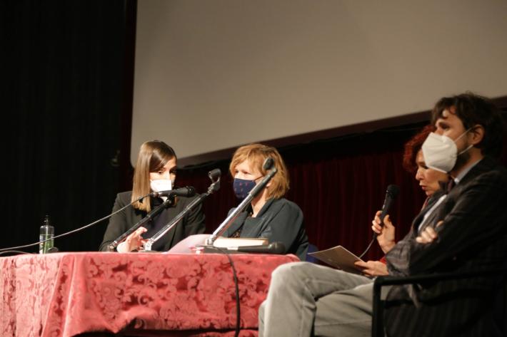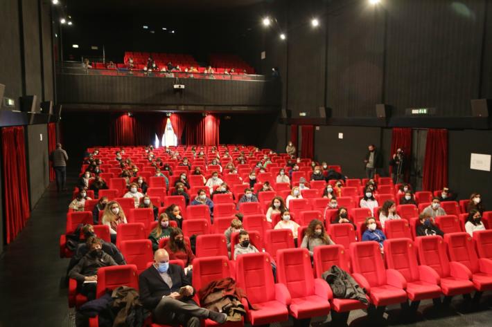Al Cinema Astra si è svolto l'incontro mattutino dedicato agli alunni delle scuole medie, erano presenti sei classi della scuola Don Cavalli, con il vincitore della categoria 11+, Davide Morosinotto, e la vincitrice per la categoria esordienti Annet Schaap.