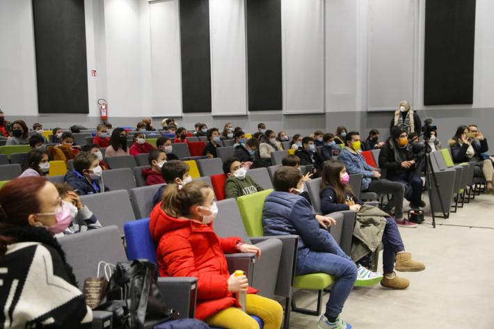 Nel pomeriggio, invece, il vincitore della categoria 8+, Alessandro Barbaglia, ha incontrato gli alunni delle scuole elementari al teatro della scuola Anna Frank - erano presenti 6 classi della scuola Anna Frank - e Alex Cousseau, vincitore della categoria 6+, si è collegato all'incontro dalla Francia.