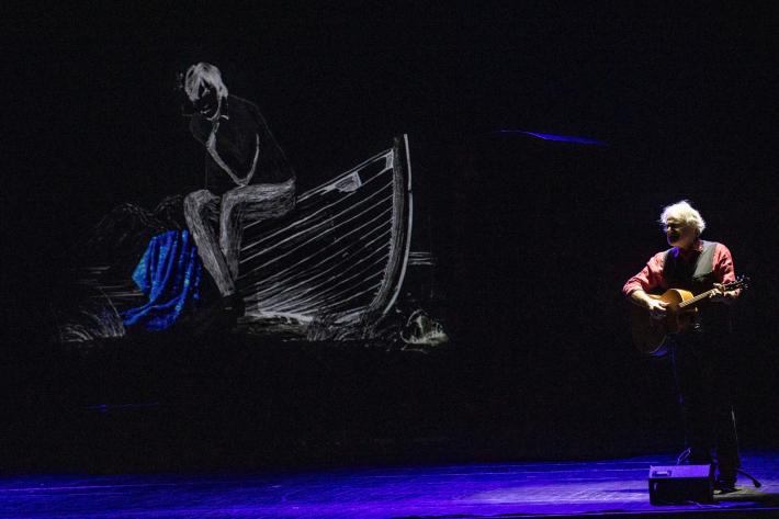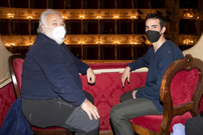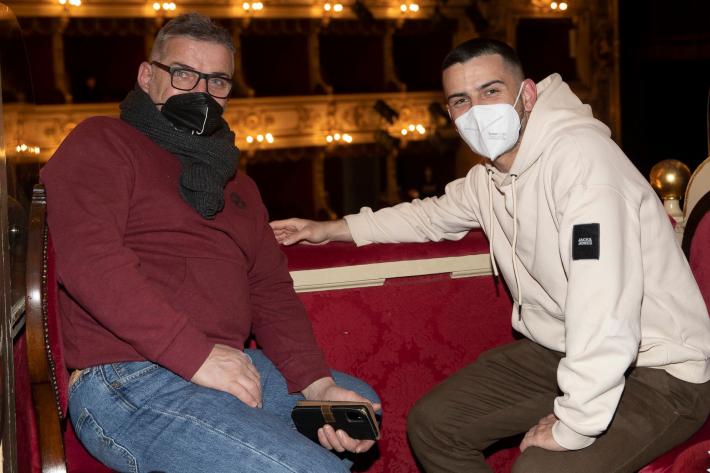 Fabrizio De André e Gigi Riva. Il cantautore e il cannoniere di calcio. Faber e Rombo di tuono. «Amici fragili» come il titolo dello spettacolo, scritto da Federico Buffa e Marco Caronna, che è andato in scena al Regio stasera (mercoledì 9 febbraio) nell’ambito della rassegna «Tutti a Teatro 2022».
