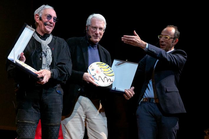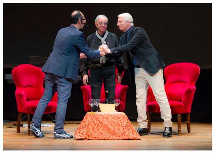 Tra tantissimi brani storici (ma anche quelli meno conosciuti), si sono celebrati i loro 50 anni di colonne sonore e i loro imminenti 60 anni di carriera. Ciliegina sulla torta, il Premio Mangiacinema – Creatori di Sogni, ritirato dal direttore artistico Gianluigi Negri e da Franco Dassisti (conduttore de “La rosa purpurea” su Radio 24, storico media partner del Festival Mangiacinema). Momento Made in Borgo con il Parmigiano bio dell’Azienda Persegona, presentato da Giuliano Persegona.