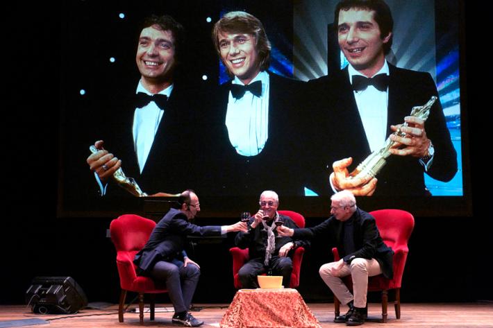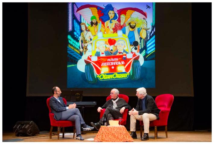 Teatro Magnani sold out, standing ovation, emozioni incredibili vissute grazie a due miti e leggende della musica internazionale: gli Oliver Onions (Guido e Maurizio De Angelis) hanno esaltato il pubblico di Mangiamusica sabato sera con la serata “Future memorabilia”.