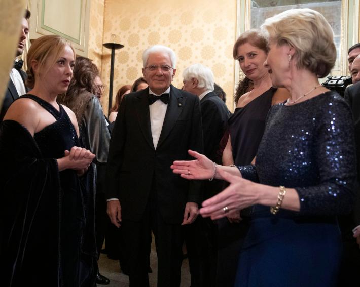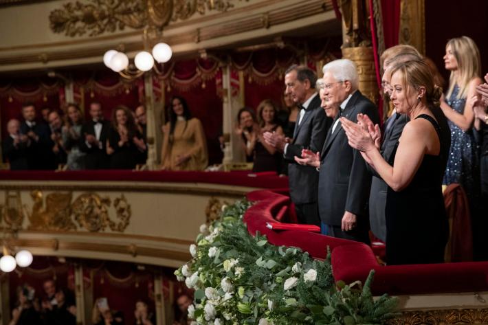 Si è aperta stasera al Teatro alla Scala la stagione dell’opera 2022/23, in scena "Boris Godunov" di Modest Petrovic Musorgskij. Nel palco reale il presidente della Repubblica Sergio Mattarella, accolto da un’ovazione con 5 minuti di applausi dal pubblico in sala e in piedi e salutato con grida di "Grazie presidente, grazie". Mattarella ha a sua volta ringraziato commosso, mettendosi più volte la mano sul cuore. Accanto a lui la presidente della Commissione Europea Ursula von der Leyen, la presidente del Consiglio Giorgia Meloni che ha cantato l’inno, il presidente del Senato Ignazio La Russa, il sindaco di Milano Beppe Sala.