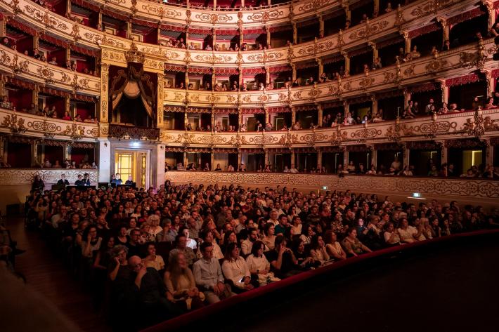 Niccoló Fabi ha aperto il suo concerto di stasera al Regio con un ricordo del fatto che la sua tappa precedente a Parma è stata l'ultima prima della lunga pausa della pandemia. Una specie di ricominciamo da dove eravamo rimasti che ha creato un'atmosfera speciale per la data ducale del «Meno per meno tour». Inserito nella rassegna «Tutti a Teatro», realizzata da Caos Organizzazione Spettacoli in partnership con Arci, l’appuntamento con il cantautore romano è stato l’occasione per rivive 25 anni di storia della musica. E il pubblico parmigiano ha risposto con entusiasmo.
