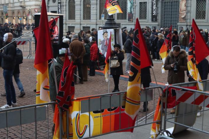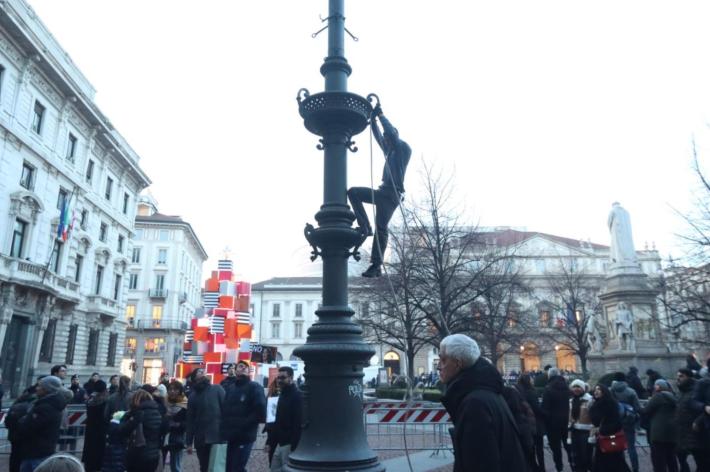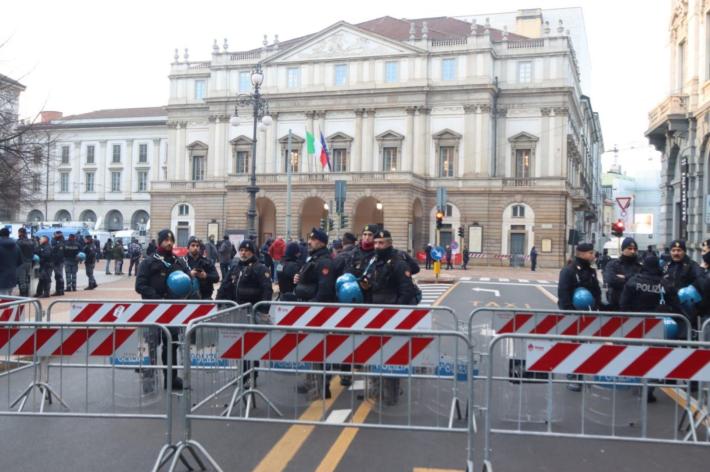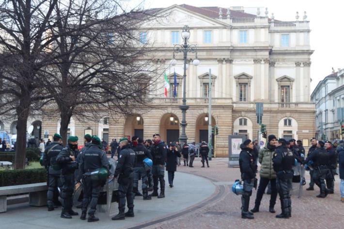 All’esterno, come ogni anno il 7 dicembre, non sono mancate le proteste. Un gruppo di attivisti pro Palestina ha steso una grossa bandiera della Palestina scandendo cori come «free free Palestine» e «Israele fascista, Stato terrorista». Esposti anche diversi cartelloni con scritto «stop genocide». Altri manifestanti si sono radunati sul lato di palazzo Marino, sventolano le bandiere del sindacato di base autonomo Cub che, come ha spiegato il segretario Mattia Scolsri, ha deciso di portare in piazza «la voce dei lavoratori in contrapposizione ai potenti e ai politici che saranno presenti alla Prima».