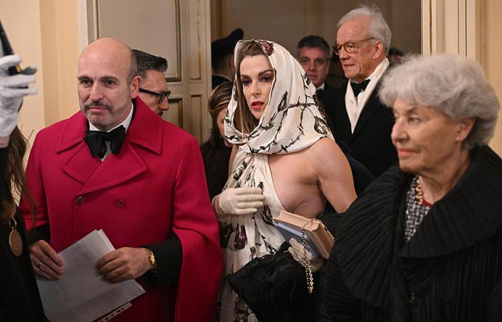 Tra gli altri ospiti Fedele Confalonieri, presidente di Mediaset e della Veneranda Fabbrica del Duomo, Mario Monti, l'architetto Mario Botta, Livia Pomodoro, la cantante Patti Smith e il regista Pedro Almodovar. Alcune signore hanno voluto ricordare tutte le vittime del femminicidio, da Giulia Cecchettin a Giulia Tramontano, indossando un abito o un accessorio rosso sfatando così la tradizione che vieta questo colore a teatro per mandare un messaggio contro la violenza sulle donne. Sabina Negri, drammaturga, ha indossato delle scarpe rosse e davanti al Piermarini tira fuori le chiavi dalla borsa per far rumore come chiesto dalla sorella di Giulia Cecchettin, mentre il chirurgo plastico Dvora Ancona si è fatta realizzare un abito rosso da Antonio Riva. Una signora si è presentata con un segno rosso sul viso.