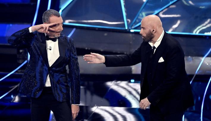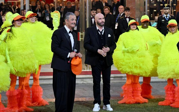 È uno degli attori più amati e popolari, reduce dallo scivolone al festival di Sanremo per il presunto caso di pubblicità ad un marchio di scarpe sportive e soprattutto per aver ballato, lui che ha incantato in Grease, il famigerato ballo del qua qua diventato poi oggetto di meme e ironia non solo in Italia. Travolta festeggia con i due figli Ella e Benjamin.