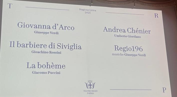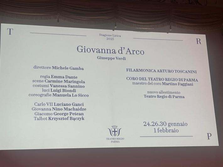 E’ in corso la presentazione della Stagione 2025 del Teatro Regio (che oggi mostra anche la nuova grafica del logo). Per la stagione lirica ci saranno quattro opere e un concerto. Cambia l’inizio: non più il 12 ma il 24 gennaio. Inaugura, come già anticipato dalla Gazzetta, la Giovanna d’Arco per la regia di Emma Dante.