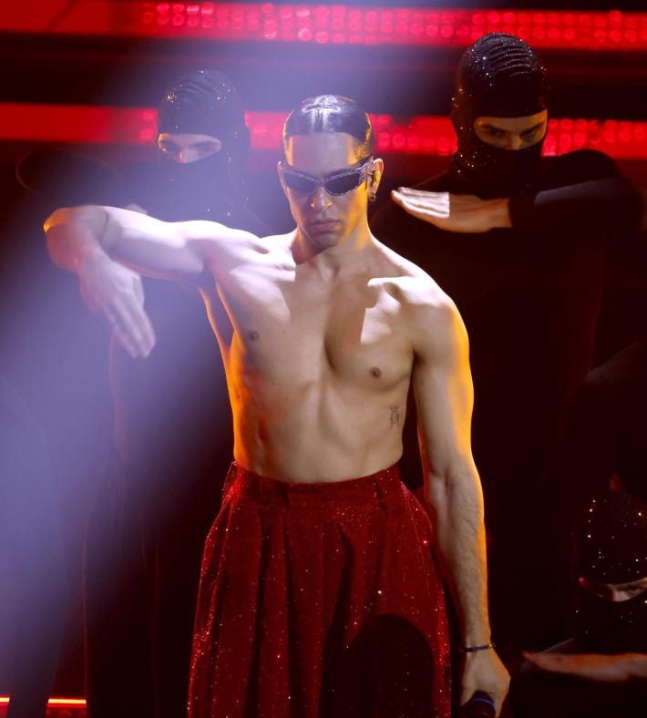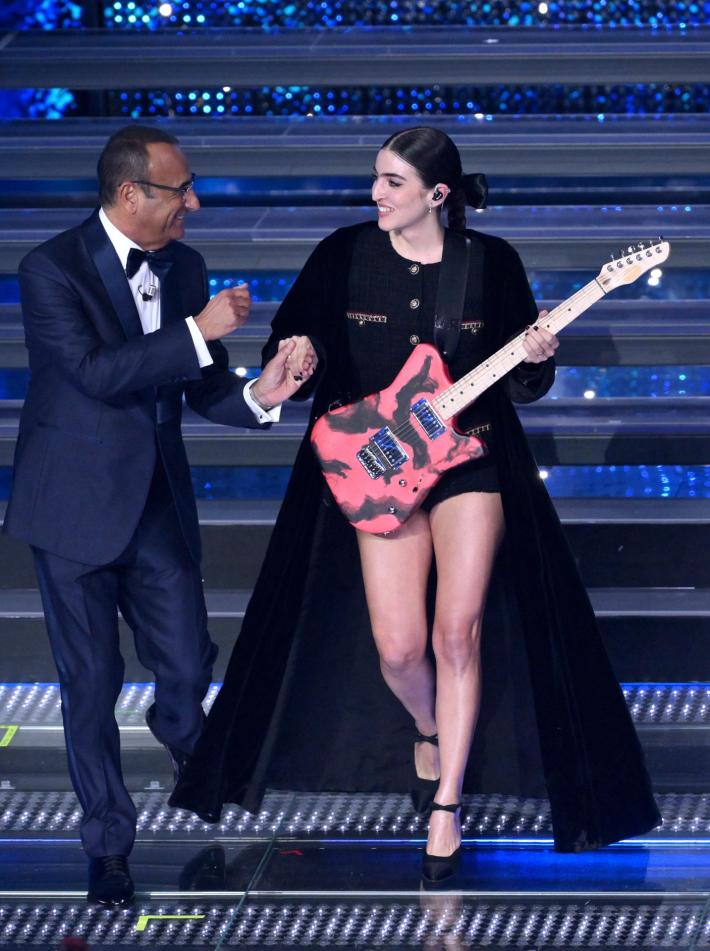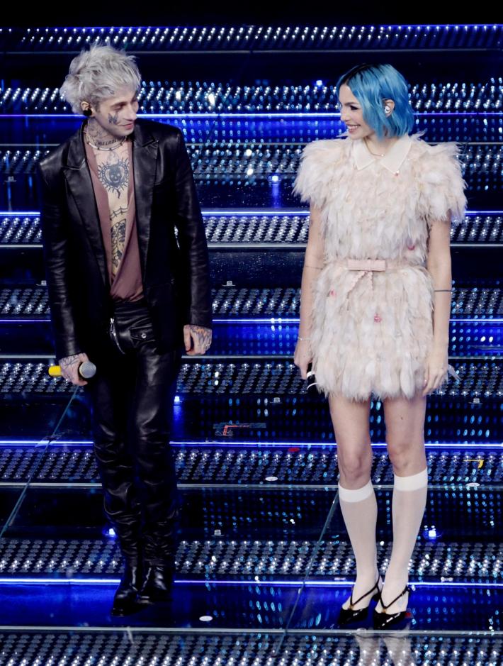 MAHMOOD - Come co-presentatore non supera la barriera timidezza ma per il resto spacca, con il completo nippo tutto traforato e con il balletto a petto nudo e pantaloni rossi baiadera. Dalla tuta gold al samurai di Gratasoglio è un attimo.