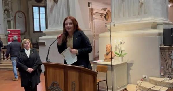 Mariangela Sicilia ringrazia il pubblico di Parma per il premio Verdi d’oro della Corale Verdi, ricevuto all’Annunziata durante il tradizionale concerto di Sant’Ilario, alla 25esima edizione.