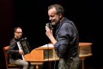 E’ uno spettacolo a più livelli “Lieto Fine”, di cui si gusta volentieri anche il gioco delle parole tra suono e senso, e si ride e si sorride delle battute dette “alla toscana” con Benvenuti che si muove finto impacciato in quello spazio scenografico fitto di molte cose, ruote alla Tinguely che ogni tanto si mettono in movimento, un orologio a cucù, fonti di luce sparse anche in barattoli semiaperti, al centro quella bicicletta su cui ogni tanto l’attore sale e pedala lasciando scorrere discorsi che dal metafisico scivolano nel quotidiano, dentro una sorta di ansia perenne, per lo spettacolo da completare, la gelosia per quel Mario in arrivo, il vago, indefinito, senso di spaesamento che prevale su tutto, stati d’animo che sembrano viaggiare in forma labirintica tra ricordi di teatro e di vita definitivamente connessi, tra suoni che, anche quando sembrano provenire dall’esterno emergono come dalla mente, accumuli stratificati e caotici come per le tante cose in scena. E’ così la vita? Raccolte in fondo inutili, da abbandonare, giunti alla meta ultima? Non sapendo però dove mettere il corpo, lui ormai defunto? “Ho comprato la casa sbagliata?…non è la location per il lieto fine?”. In tutto lo spettacolo si coglie il valore di quella comicità stralunata che è insieme di Alessandro Benvenuti e Roberto Abbiati, da godere in sé, al momento, ma che lascia intravedere una poetica colta, raffinata, resa così immediata attraverso procedimenti teatrali di speciale intelligenza e ironia. Lunghissimi gli applausi da parte del folto pubblico del Teatro del Cerchio, e poi ancora e ancora, per lo spettacolo, come omaggio a un maestro.