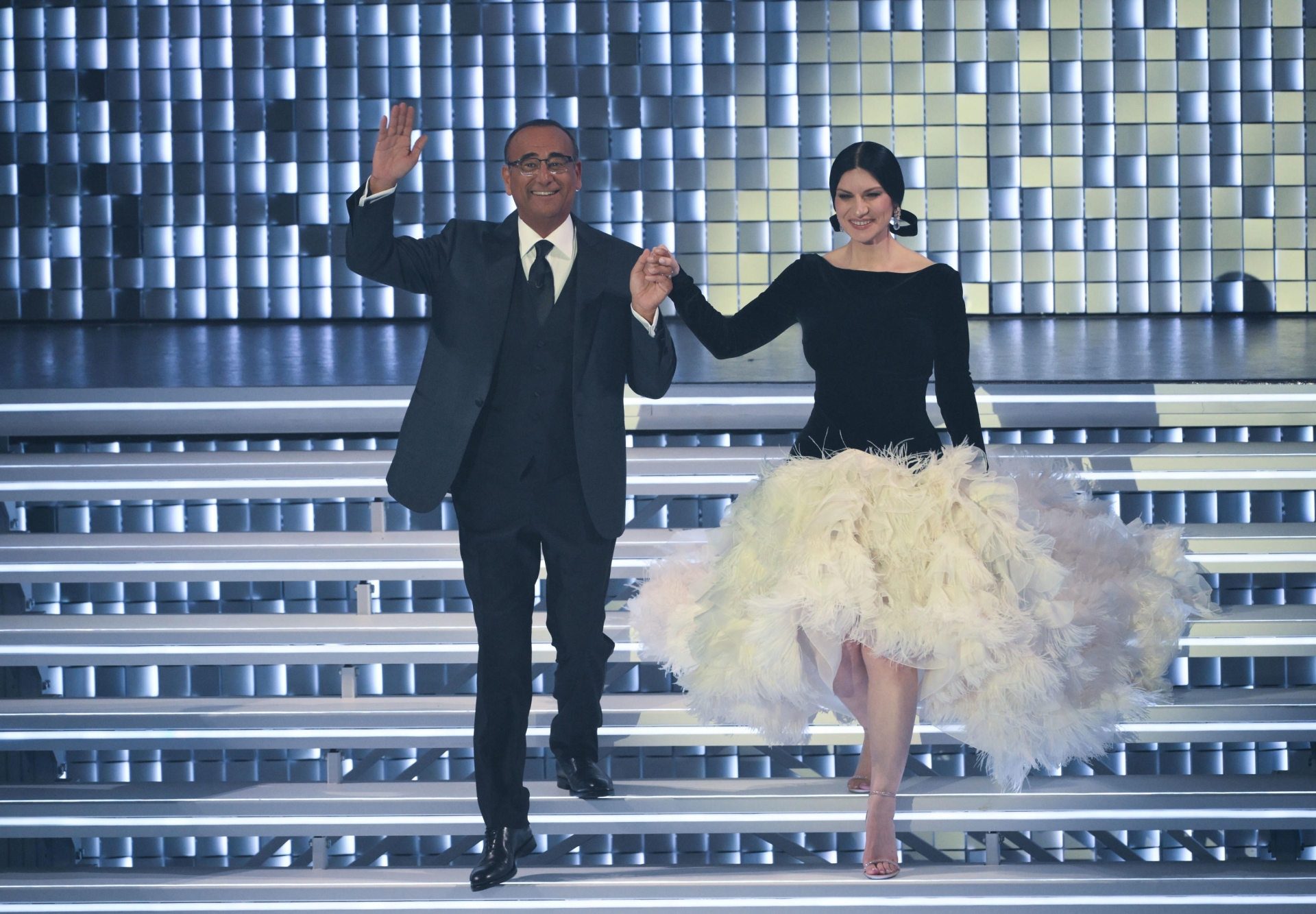 Carlo Conti e Laura Pausini, in corpetto di velluto nero a ampia gonna bianca di ruche e piume, aprono insieme la terza serata del Festival di Sanremo. I due presentatori saranno affiancati da Irina Shayk e Ubaldo Pantani nei panni di Lapo Elkann. Tanti anche gli ospiti, fra cui Alicia Keys, Eros Ramazzotti, Virginia Raffaele, Fabio De Luigi e il Piccolo coro dell'Antoniano.