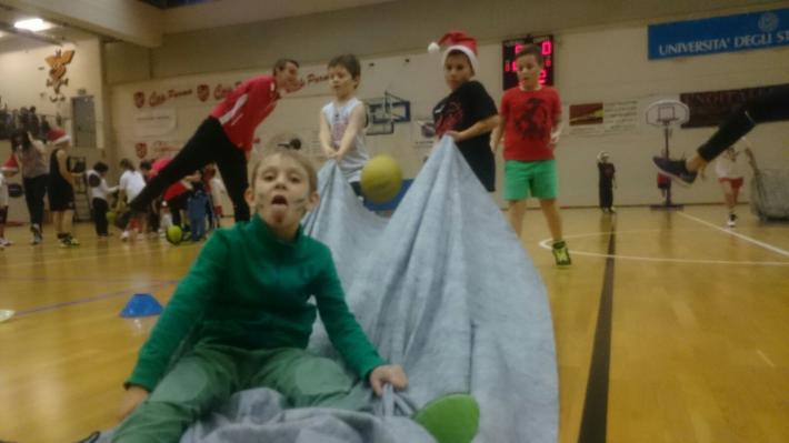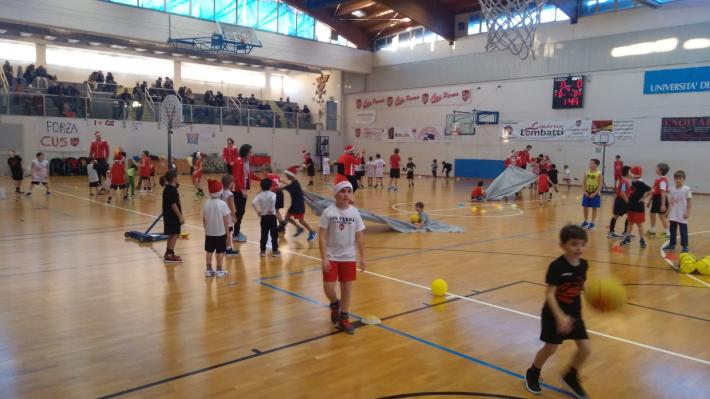 Un canestro sotto l’albero e ancora la gara delle slitte, il percorso di Natale e una pioggia di palle di neve. Ecco il Natale del Minibasket targato Cus Parma che questo pomeriggio ha visto un centinaio di bimbi festeggiare al Palacampus. In un palazzetto gremito di genitori e parenti i Centri Minibasket del Cus Parma, con i bambini del Campus, della Scuola Europea e degli istituti Albertelli e Martiri di Cefalonia, hanno dato vita ad un pomeriggio di giochi e divertimento. Ben cinque le sfide tra “Grinch” ed “Elfi di babbo natale” che si sono disputate nel mondo incantato realizzato da Michele Tonini, responsabile del Minibasket del Cus, e dal suo staff. Una vera e propria maratona natalizia che ha visto i due team darsi battaglia tra la gara delle slitte, la pioggia di palle di neve, il percorso di Natale, lo Spostapalloncini, e la Sfida Cantastorie. Successivamente sono scesi in campo gli Esordienti che hanno dato via ad un avvincente torneo. Alla fine gli auguri di rito e lo scambio dei regali che ciascun bambino ha portato per donare agli altri.
