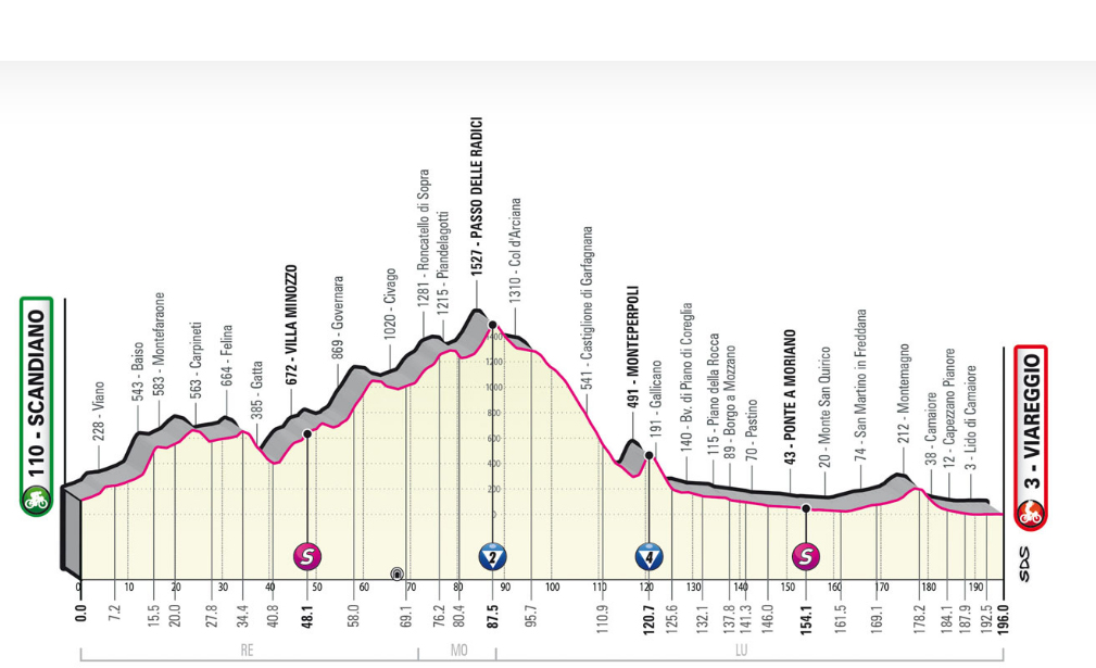 Un'altra occasione per gli appassionati di casa nostra per vedere dal vivo il Giro e non fare molti chilometri è la tappa successiva, la Camaiore-Tortona tra Forte dei Marmi, Marina di Massa, per salire fino al passo del Bracco, scendere fino a Chiavari e risalire leggermente fino a Ferriere (Genova) e poi a Tortona.