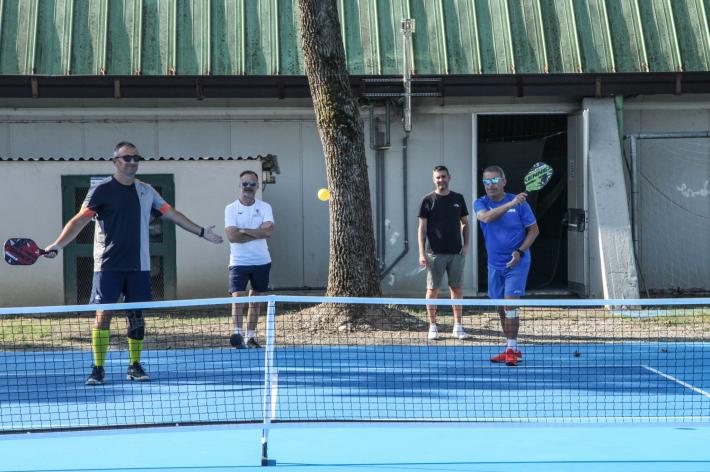 Una domenica mattina all’insegna dello sport, quella che ha contraddistinto soci e ospiti del Tennis Club President. Alla presenza di Daniele Friggeri, sindaco di Montechiarugolo, infatti, sono stati inaugurati i campi da padel e da pickleball che regaleranno simpatiche alternative, sempre con la racchetta in mano, a tutti coloro che frequentano abitualmente il circolo. Tra i presenti, ricercatissimi per gli ormai classici selfie, tre leggende del Parma Calcio: Sandro Melli, Marco Osio e Marco Giandebiaggi. Con loro anche l’amministratore delegato di Parma Partecipazioni Calcistiche, Paolo Benecchi. Dalle 10 alle 13, sotto l’attenta guida organizzativa di Franco Bardiani, si sono alternati in sfide amichevoli che hanno appassionato i numerosi spettatori, tra cui anche Romano Botti, Presidente del Tennis Club President. E poi, tutti a pranzo insieme, per concludere nel modo migliore qualche ora di sport e divertimento.